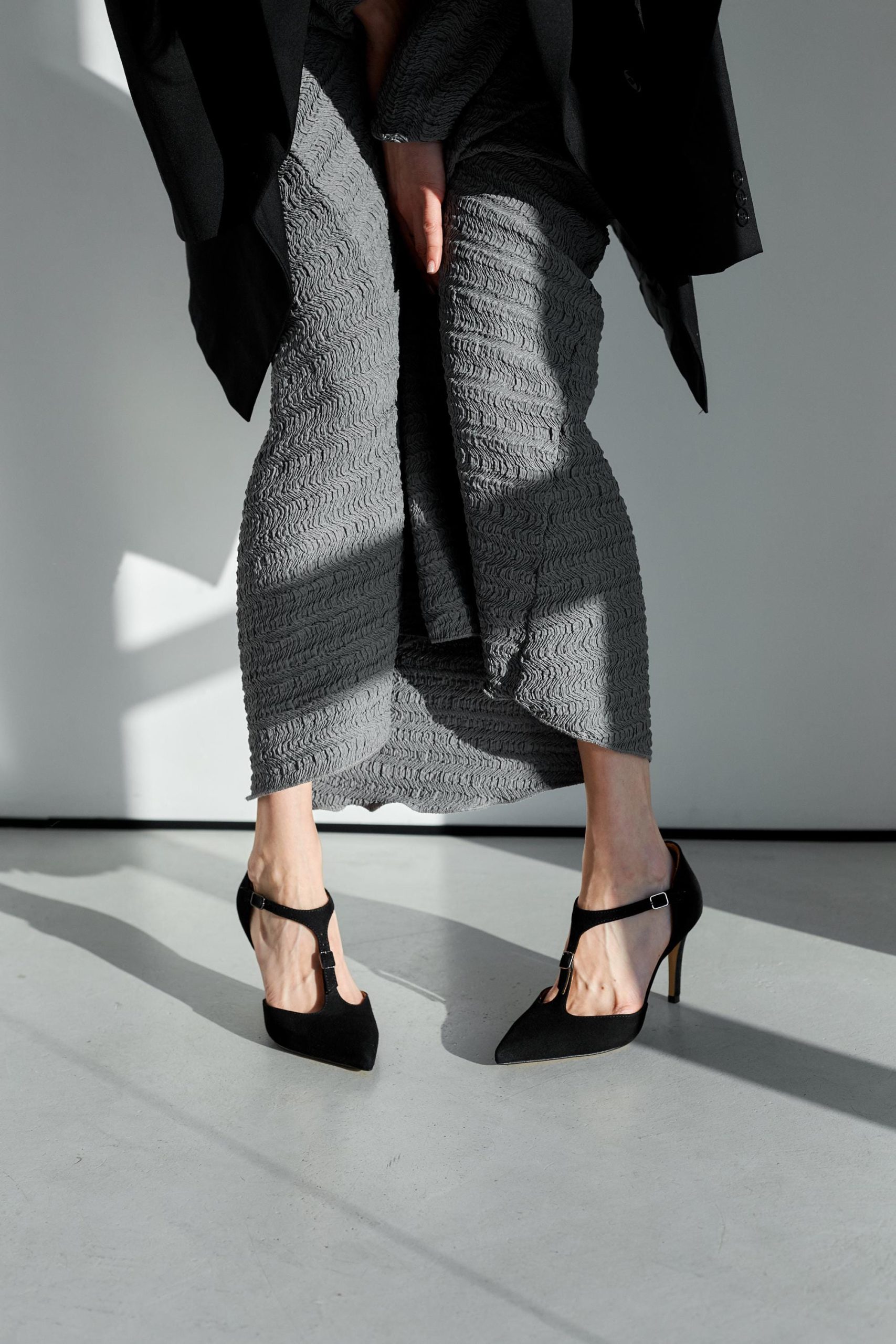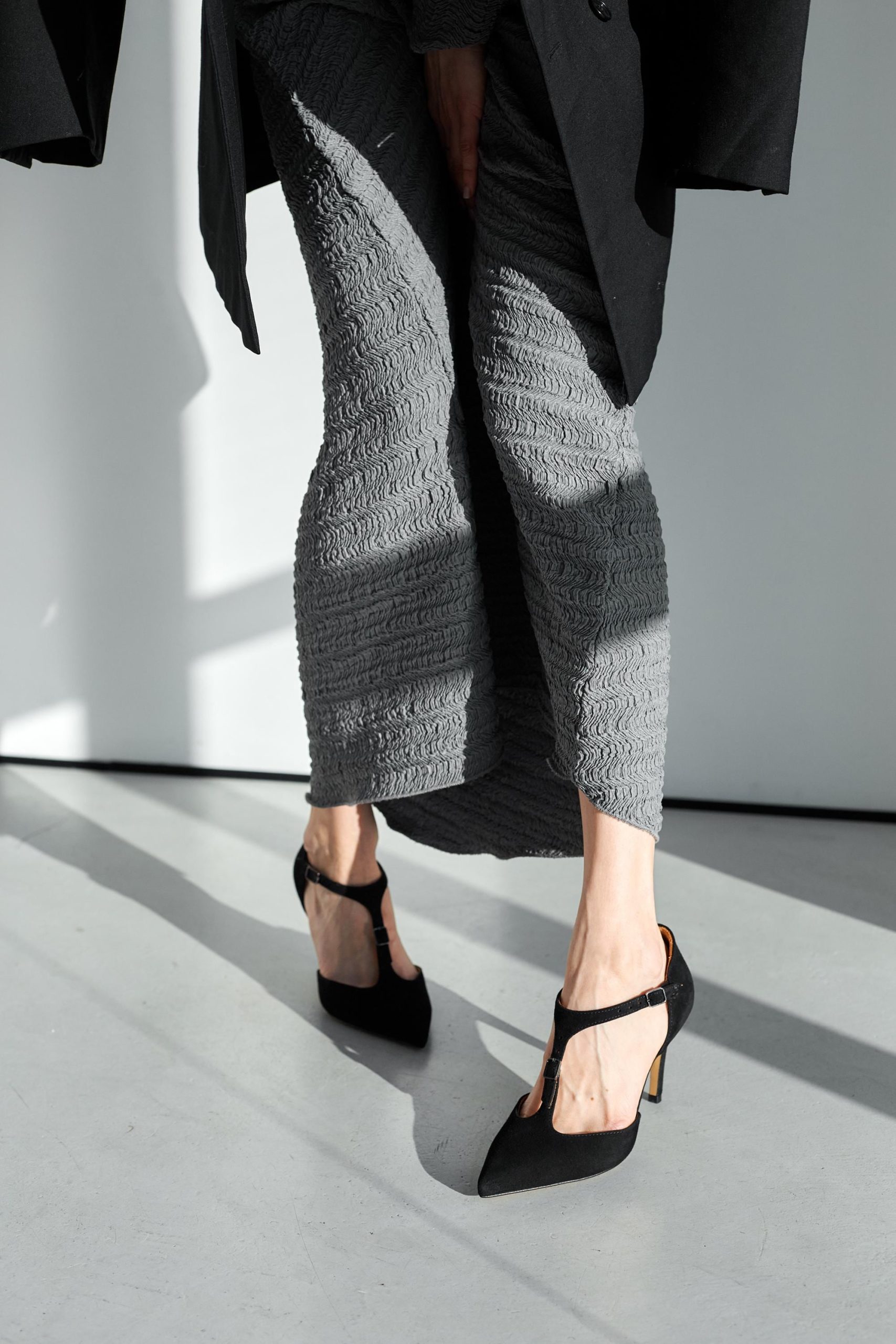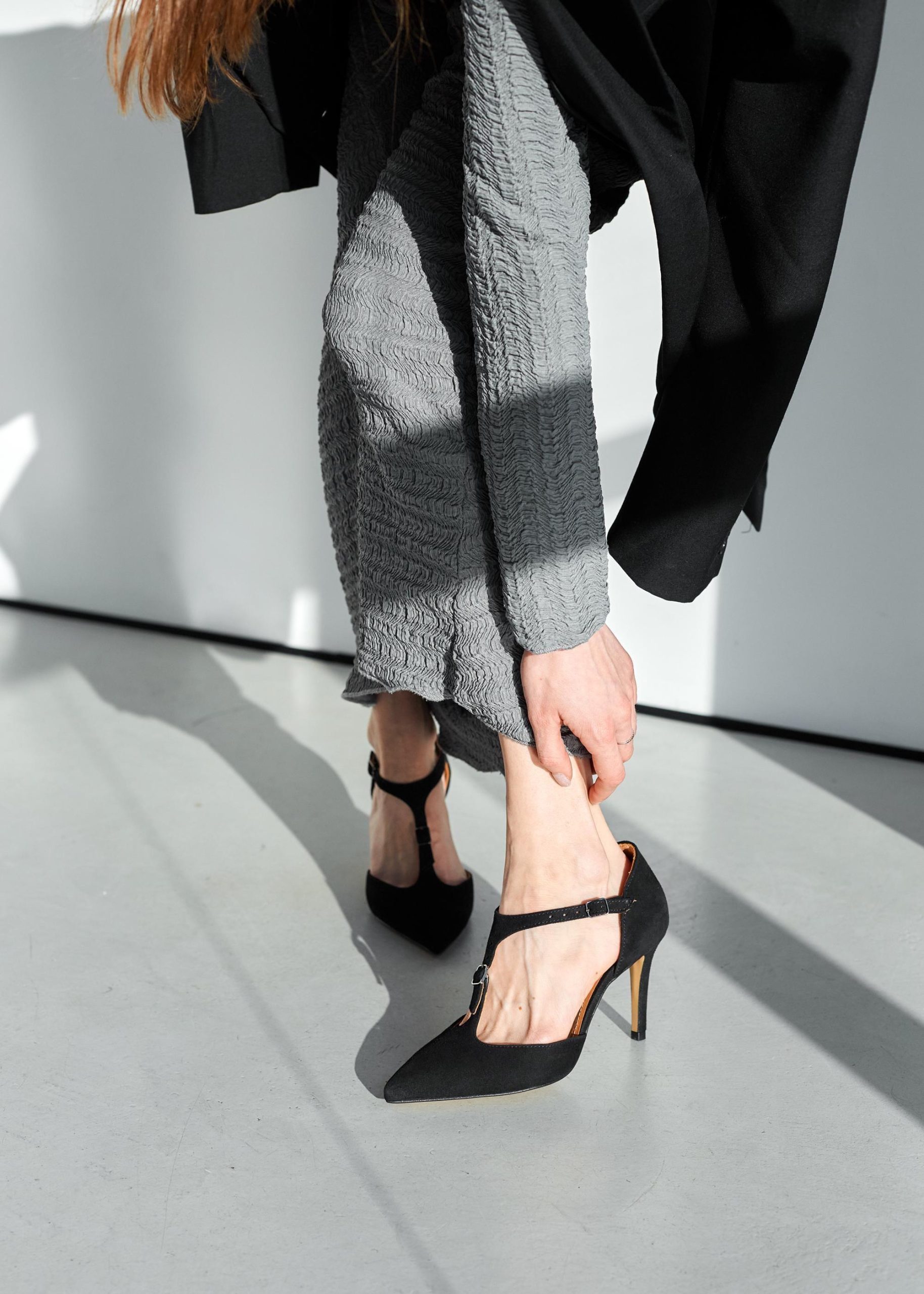 Black Suede Sandals Ankle Strap Pointed Toe Stiletto